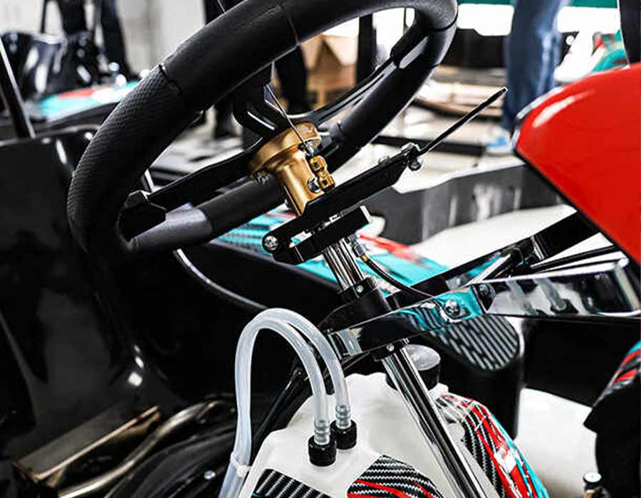 Thanks to the adjustable pedal box and ergonomic driving position, the kart is easy to drive for different users and replicates the handling feel of real racing karts, with improved lateral grip through corners.
